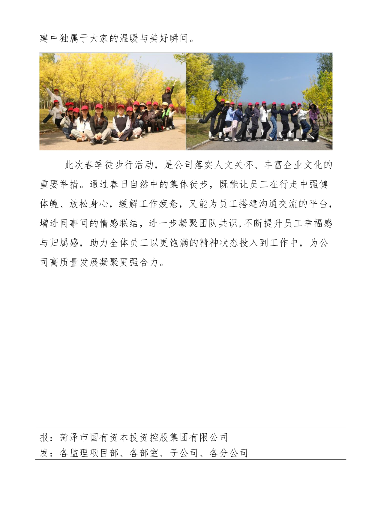 | 上一条:菏泽市建设工程监理咨询有限公司简报(173) | 下一条:健步七里河·踏青我快乐 ——市监理咨询有限公司工会开展春季徒步行团建活动 |